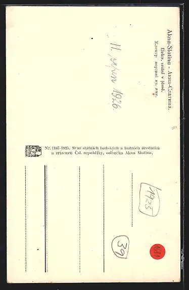 Personenbezogene Daten auf der Rückseite der Karte wurden durch blauen Textmarker unkenntlich gemacht. Die blauen Stellen sind auf die Vorderseite durchgeweicht und wirken sich negativ auf das Postkartenfoto aus