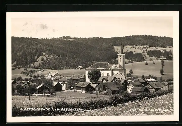 AK Alberschwende, Ortsansicht mit Feld, Wald und Wiesen