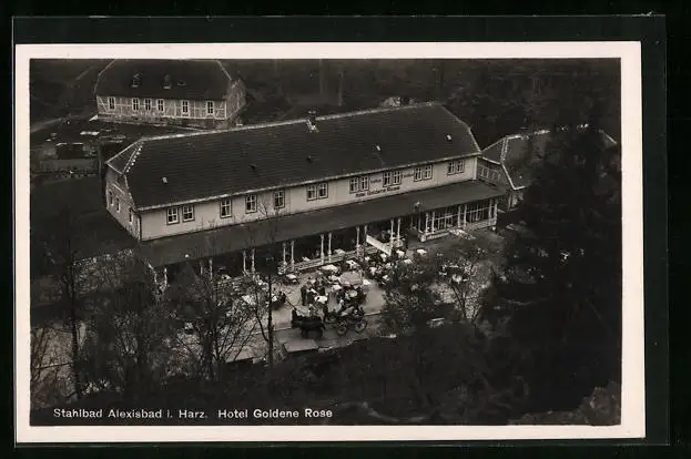 AK Alexisbad i. Harz, Hotel Goldene Rose aus der Vogelschau
