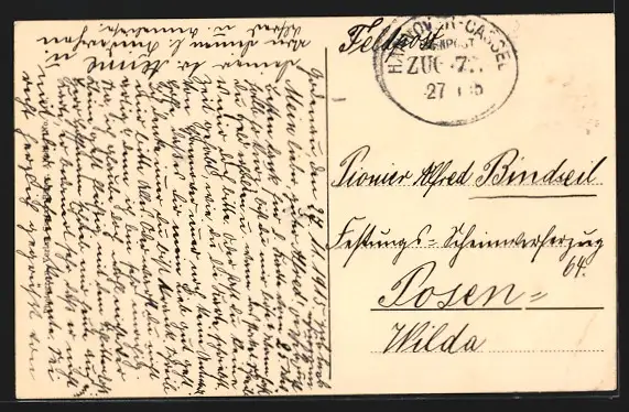 gelaufen 1915, Eckknicke li. unten, guter Zustand