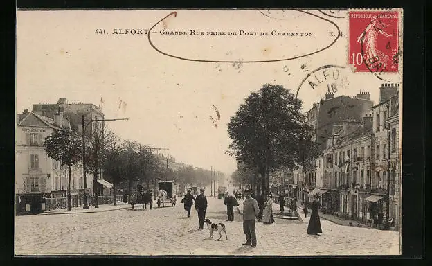 AK Alfort, Frand Rue prise du Pont de Charenton