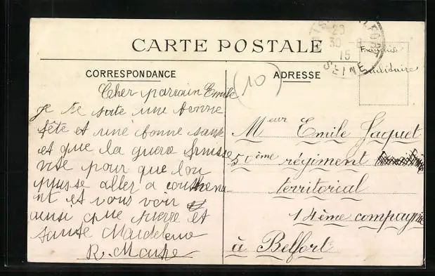 gelaufen 1915 als Feldpost, guter Zustand