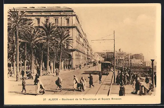 AK Alger, Boulevard de la République et Square Bresson, Strassenbahn