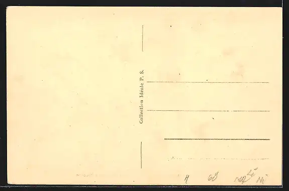 Personenbezogene Daten auf der Rückseite der Karte wurden durch blauen Textmarker unkenntlich gemacht. Die blauen Stellen sind auf die Vorderseite durchgeweicht und wirken sich negativ auf das Postkartenfoto aus
