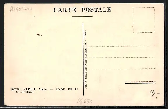 AK Alger, Hotel Aletti, Facade Rue de Constantine