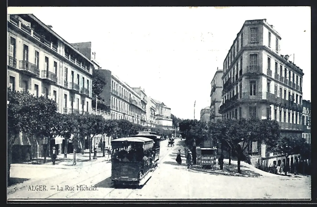 AK Alger, La Rue Michelet, Strassenbahn