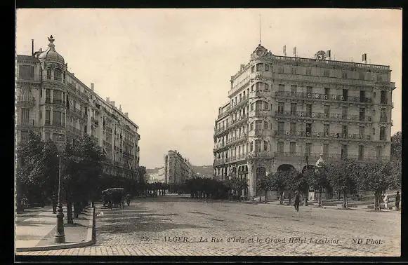 AK Alger, La Rue d`Isly et le Grand Hotel Excelsior