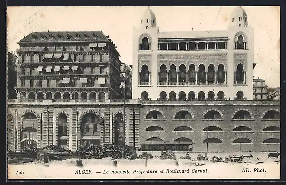 AK Alger, La novelle Préfecture et Boulevard Carnot