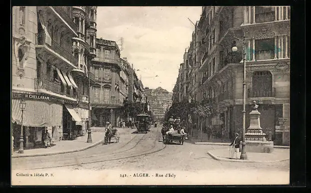 AK Alger, Rue d`Isly, Strassenbahn
