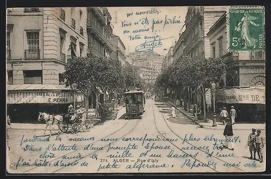 AK Alger, Rue d`Isly, Strassenbahn