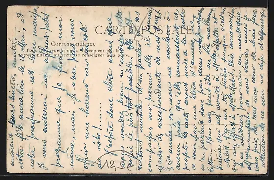 Personenbezogene Daten auf der Rückseite der Karte wurden durch blauen Textmarker unkenntlich gemacht. Die blauen Stellen sind auf die Vorderseite durchgeweicht und wirken sich negativ auf das Postkartenfoto aus