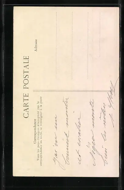 Personenbezogene Daten auf der Rückseite der Karte wurden durch blauen Textmarker unkenntlich gemacht. Die blauen Stellen sind auf die Vorderseite durchgeweicht und wirken sich negativ auf das Postkartenfoto aus
