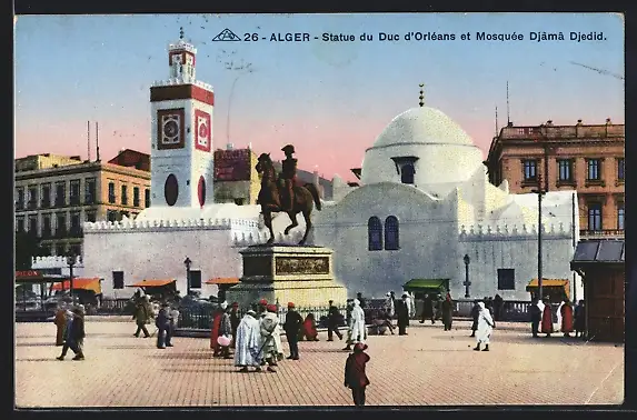 AK Alger, Statue du Duc d`Orléans et Mosquée Djama Djedid