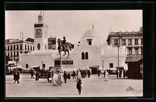 AK Alger, Statue du Duc d'Orléans et Mosquée Djemaa-Djedid