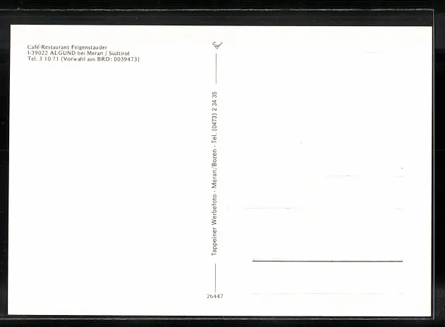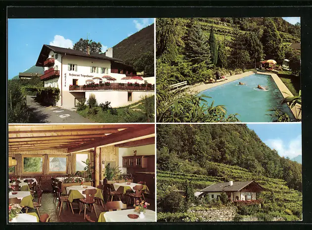 AK Algund bei Meran, Cafe-Restaurant Feigenstauder mit Swimming Pool