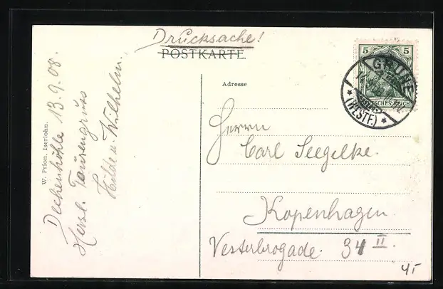 alte Ansichtskarte, gelaufen 1908, guter Zustand