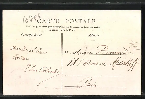Personenbezogene Daten auf der Rückseite der Karte wurden durch blauen Textmarker unkenntlich gemacht. Die blauen Stellen sind auf die Vorderseite durchgeweicht und wirken sich negativ auf das Postkartenfoto aus