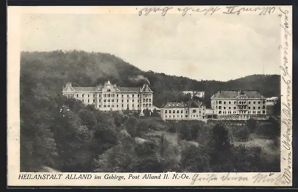 AK Alland im Gebirge, Heilanstalt aus der Vogelschau