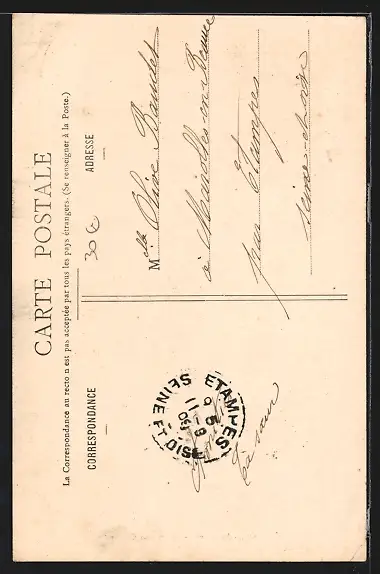 Personenbezogene Daten auf der Rückseite der Karte wurden durch blauen Textmarker unkenntlich gemacht. Die blauen Stellen sind auf die Vorderseite durchgeweicht und wirken sich negativ auf das Postkartenfoto aus