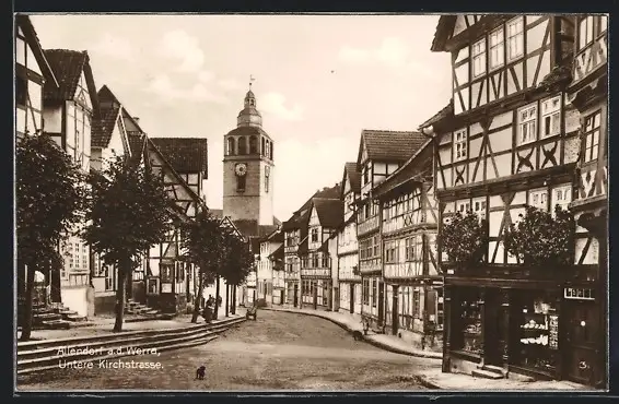 AK Allendorf a.d. Werra, Untere Kirchstrasse mit Fachwerkhäusern