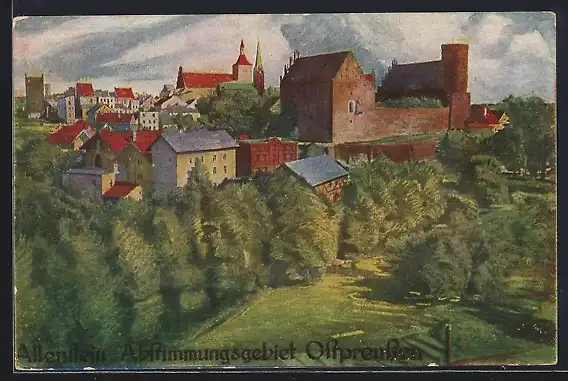 AK Allenstein, Ortsansicht mit der Kirche, Abstimmungsgebiet Ostpreussen