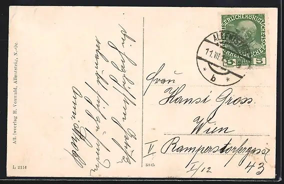 alte Ansichtskarte, gelaufen 1913, Stempelspur, guter Zustand