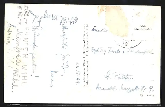 alte Ansichtskarte, gelaufen 1949, Briefmarke entfernt, guter Zustand