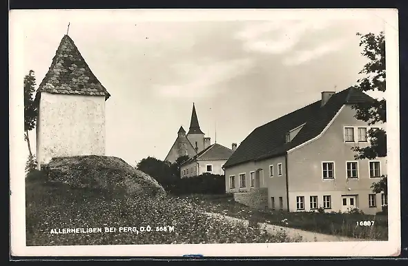 AK Allerheiligen b. Perg, Ortspartie mit Kirche