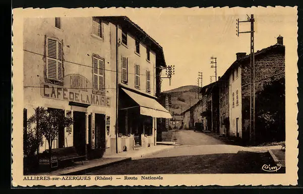 AK Allières-sur-Azergues, Route Nationale, Cafe de la Mairie