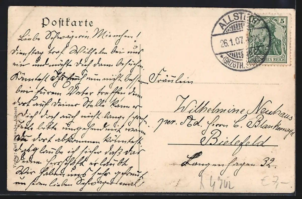 alte Ansichtskarte, gelaufen 1907, Eckknicke oben, guter Zustand
