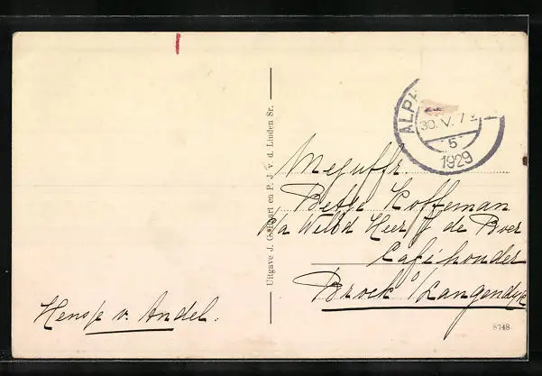 alte Ansichtskarte, gelaufen 1929, Briefmarke entfernt, rückseitig Oberflächenschaden, Eckknicke re. oben u. li., guter Zustand