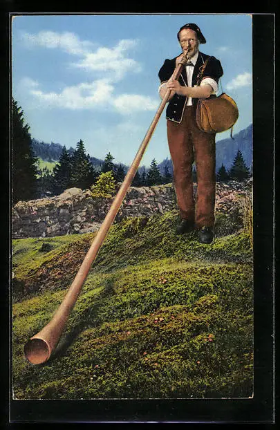 AK Alphornbläser auf einer Bergwiese