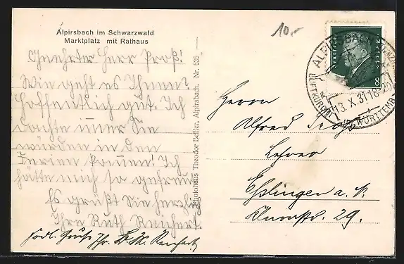 AK Alpirsbach /Schwarzw., Marktplatz mit Rathaus