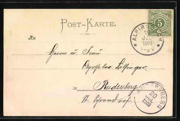 alte Ansichtskarte, gelaufen 1900, guter Zustand