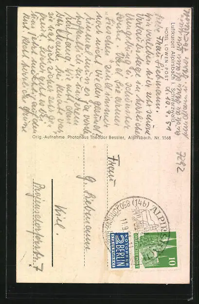 AK Alpirsbach i. Schw., Blick auf das Hotel Löwen-Post