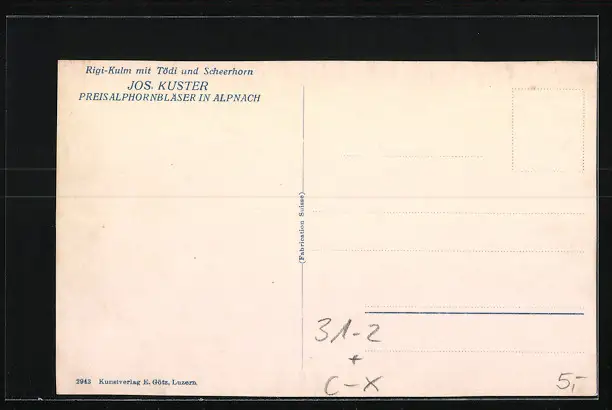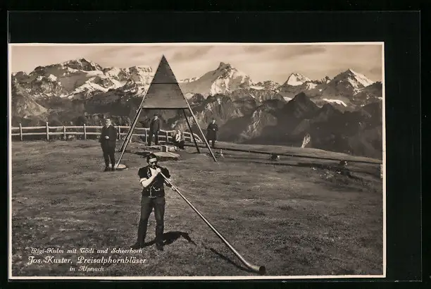 AK Alpnach, Preisalphornbläser Jos. Kuster, Rigi-Kulm mit Tödi und Scheerhorn