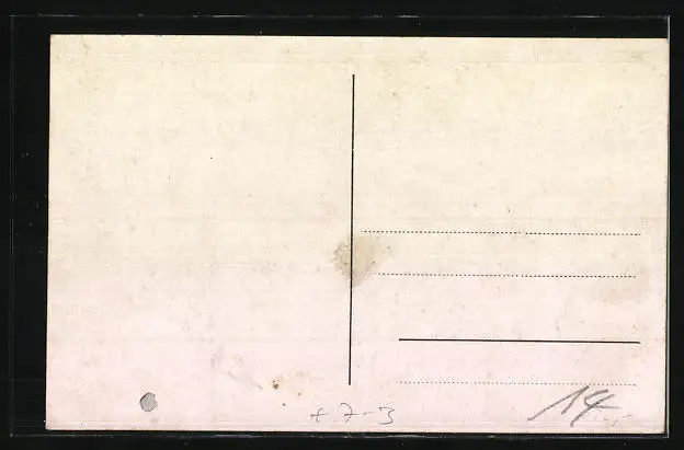 Personenbezogene Daten auf der Rückseite der Karte wurden durch blauen Textmarker unkenntlich gemacht. Die blauen Stellen sind auf die Vorderseite durchgeweicht und wirken sich negativ auf das Postkartenfoto aus