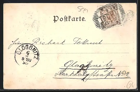 alte Ansichtskarte, gelaufen 1899, Stempelspur, guter Zustand