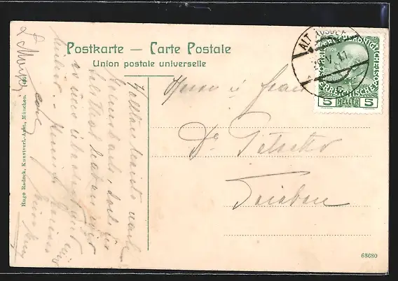 alte Ansichtskarte, gelaufen 1911, Stempelspur, Eckknick re. unten, guter Zustand