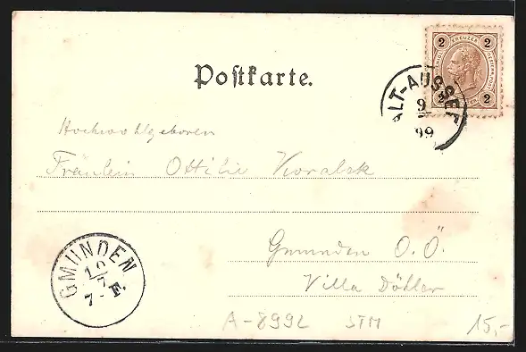 alte Ansichtskarte, gelaufen 1899, Stempelspur, guter Zustand