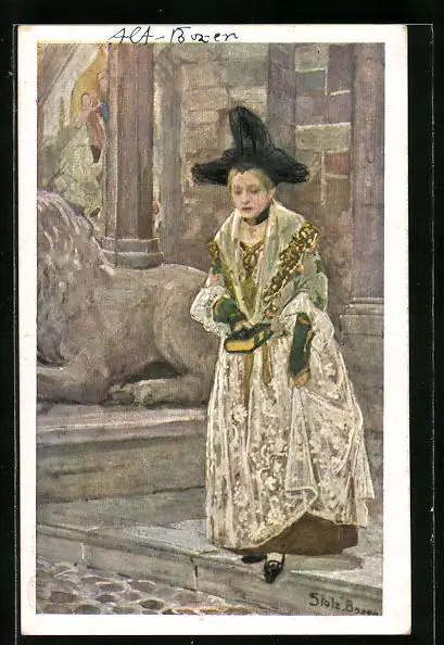AK Alt-Bozen, Frau in einem Trachtenkleid