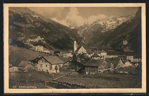 AK Alt-Engelberg, Ortspartie mit Kirche