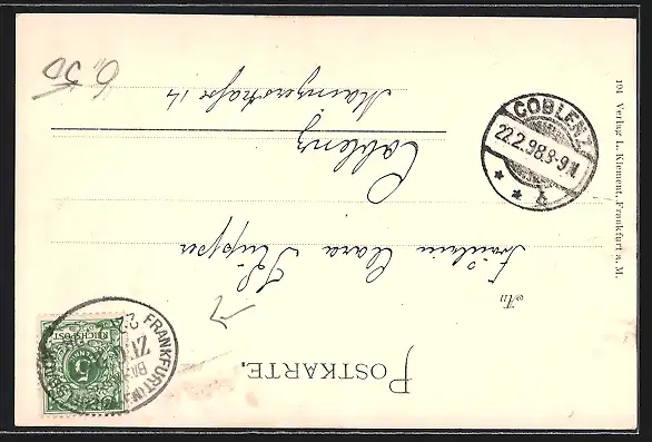 alte Ansichtskarte, gelaufen 1898, guter Zustand