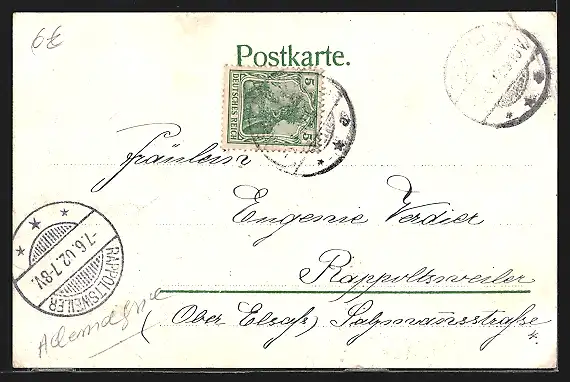 alte Ansichtskarte, gelaufen 1902, Einriss oben li., guter Zustand