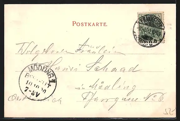 alte Ansichtskarte, gelaufen 1900, Stempelspur, guter Zustand