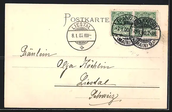 alte Ansichtskarte, gelaufen 1900, Stempelspur, guter Zustand