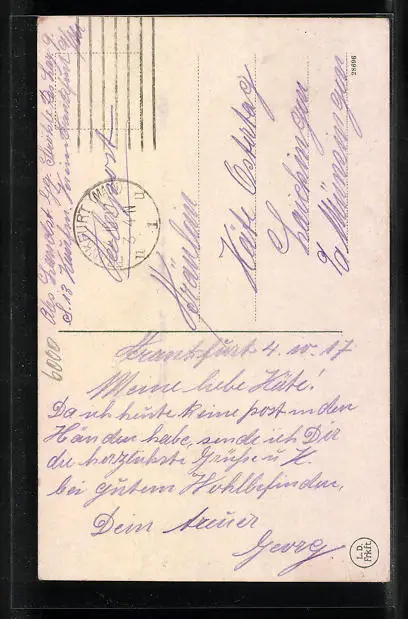 alte Ansichtskarte, gelaufen 1917 als Feldpost, Eckknick re. oben, guter Zustand