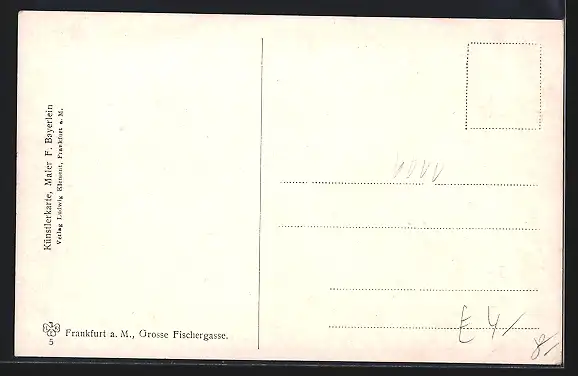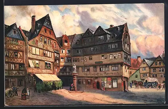 AK Alt-Frankfurt, Grosse Fischergasse, mit Denkmal