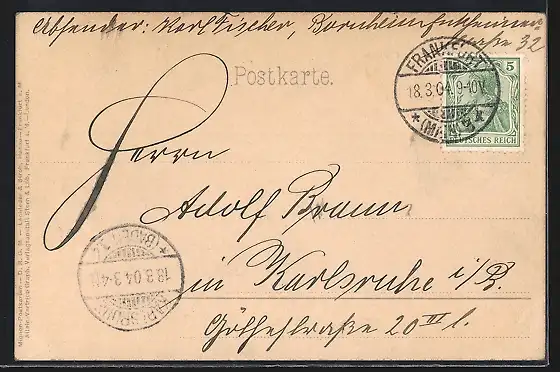 alte Ansichtskarte, gelaufen 1904, guter Zustand