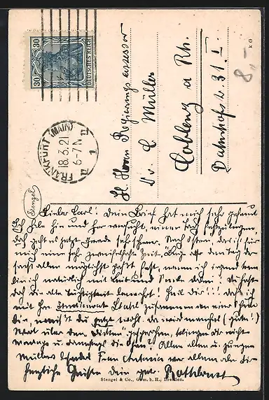 alte Ansichtskarte, gelaufen 1921, Eckknick li. unten, guter Zustand